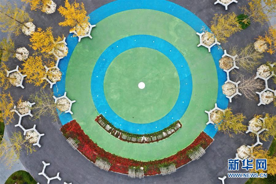 11月6日拍攝的雄安新區(qū)市民服務(wù)中心(無人機(jī)拍攝)。深秋時節(jié)的雄安新區(qū)色彩斑斕,景色宜人。新華社記者邢廣利攝
