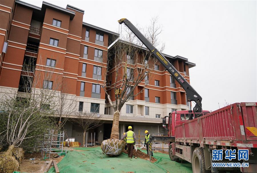 工人在雄安高質(zhì)量建設(shè)實(shí)驗(yàn)區(qū)(生活)項(xiàng)目建設(shè)現(xiàn)場吊裝樹木(3月26日攝)。新華社記者楊世堯攝