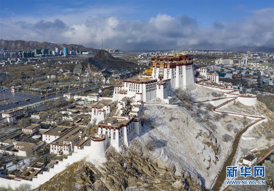 4月5日拍攝的布達(dá)拉宮雪景(無(wú)人機(jī)照片)。新華社記者普布扎西攝