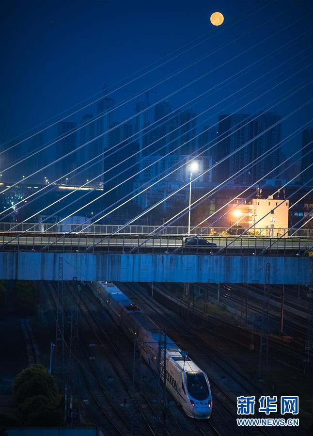 4月8日,一列動(dòng)車從武漢動(dòng)車段駛出,開往漢口站迎接旅客。 新華社記者 肖藝九 攝