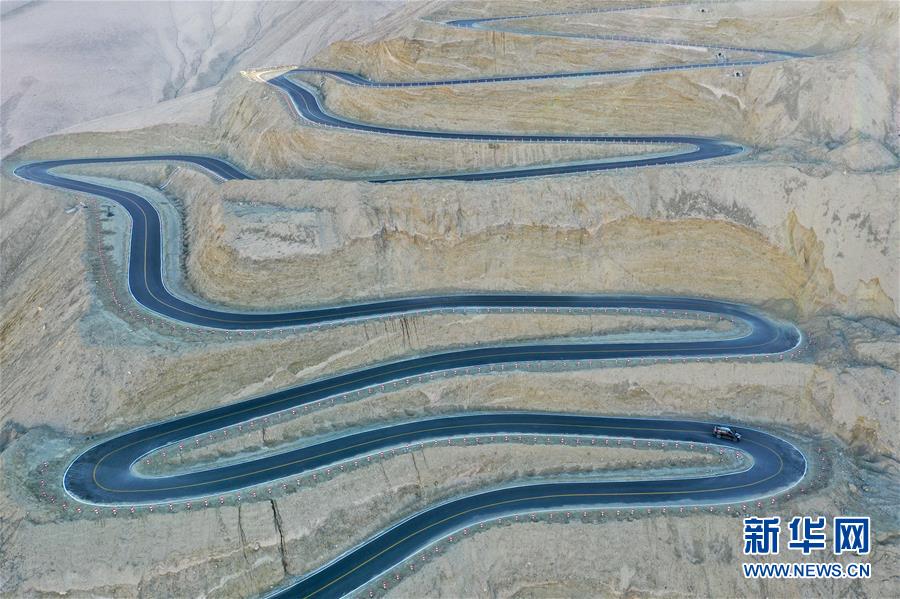 這是10月20日無人機(jī)拍攝的新疆塔什庫(kù)爾干塔吉克自治縣吾格亞提盤山公路。在中國(guó)西陲的新疆帕米爾高原,塔什庫(kù)爾干塔吉克自治縣縣城到瓦恰鄉(xiāng)之間有條蜿蜒的盤山公路,海拔超4200米,全長(zhǎng)36公里,最大落差近1000米,被當(dāng)?shù)厝朔Q為“高原天路”。盤山公路彎曲盤旋的走勢(shì)與周邊雄渾壯麗的風(fēng)光,共同構(gòu)成一幅壯美畫卷。這條公路名為吾格亞提盤山公路,2019年7月投入使用,便利了山區(qū)農(nóng)牧民的出行。新華社記者丁磊攝