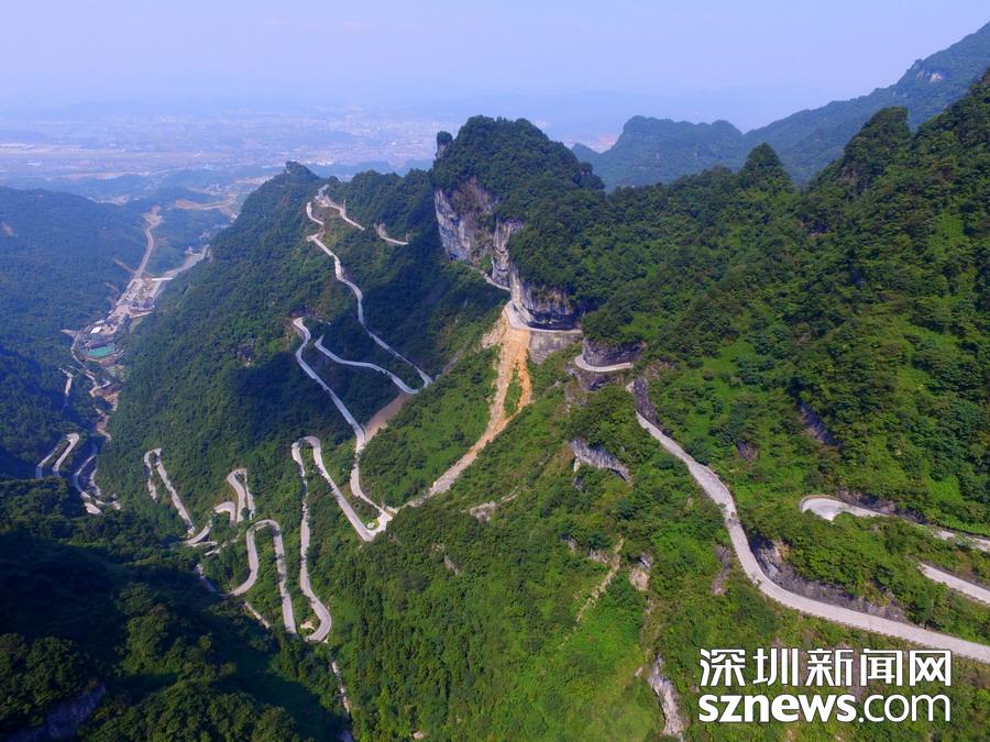 天門山盤山公路位于湖南省張家界市境內(nèi)的國(guó)家森林公園天門山上,盤山公路全長(zhǎng)10.77公里,海拔從200米急劇提升到1300米,大道兩側(cè)絕壁千仞,空谷幽深,共計(jì)99個(gè)彎,180度急彎此消彼長(zhǎng),似玉帶環(huán)繞,航拍鏡頭下蜿蜒曲折的道路彎彎緊連,層層迭起,宛如迷宮般的“納斯卡線條”,被譽(yù)為“天下第一公路奇觀”,同時(shí)它也是世界上最危險(xiǎn)的十大公路之一。