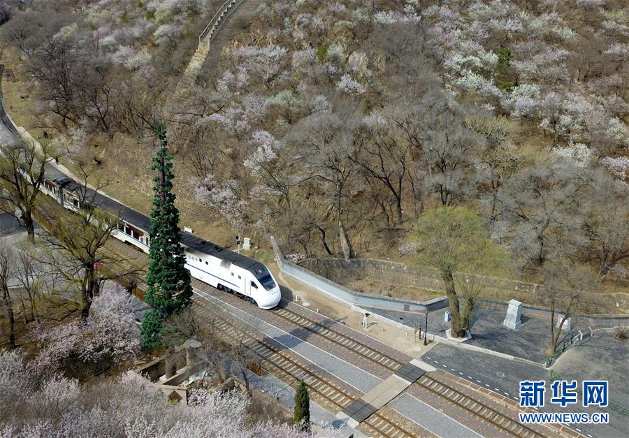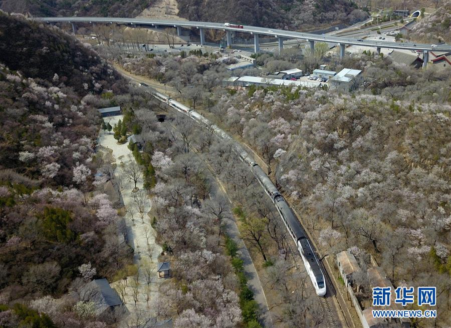 4月8日,北京青龍橋火車站附近春花盛開(無人機(jī)照片)。 新華社記者張晨霖?cái)z