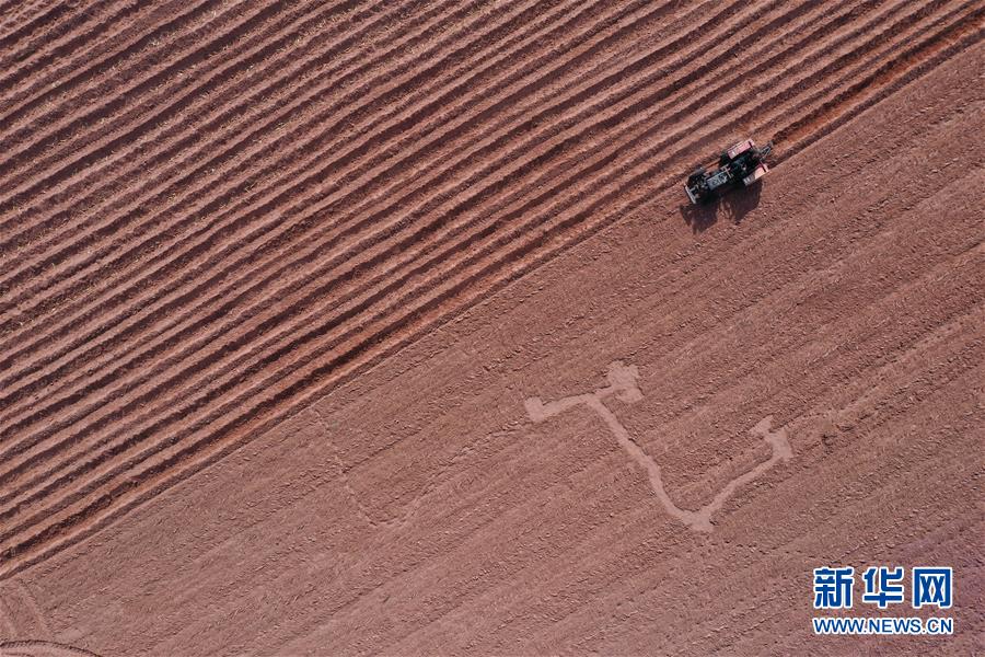 4月15日,農(nóng)民操作機(jī)械在杭錦旗道勞呼都格嘎查的農(nóng)田里翻地,為種植紅蔥做準(zhǔn)備(無人機(jī)照片)。春種時節(jié),在內(nèi)蒙古鄂爾多斯市杭錦旗道勞呼都格嘎查,農(nóng)民忙著播種紅蔥。在鄂爾多斯高原種植的紅蔥耐旱耐寒,具有較好的經(jīng)濟(jì)效益。新華社記者徐欽攝