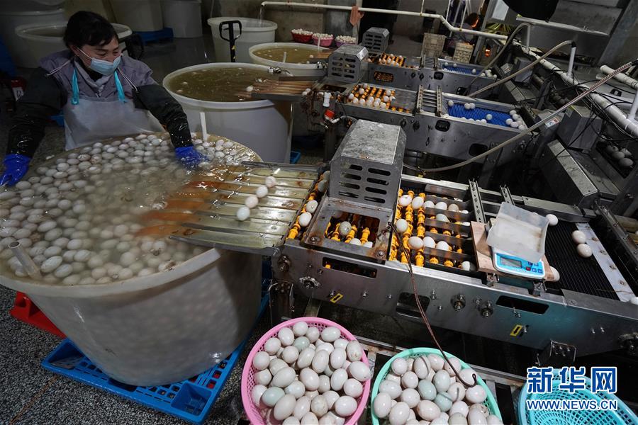 江蘇高郵鴨集團的工作人員在生產車間內清洗分揀鴨蛋(4月15日攝)。“高郵鴨蛋”是江蘇高郵的特色農業(yè)名片。近年來,當地在良種繁育、生態(tài)養(yǎng)殖、產品加工等方面加大力度,推動高郵鴨蛋品牌化建設,讓小鴨蛋成為帶動農戶致富的大產業(yè)。2019年,高郵市共計生產熟制鴨蛋產品近11.2億枚,年產值近17.68億元。新華社記者韓瑜慶攝