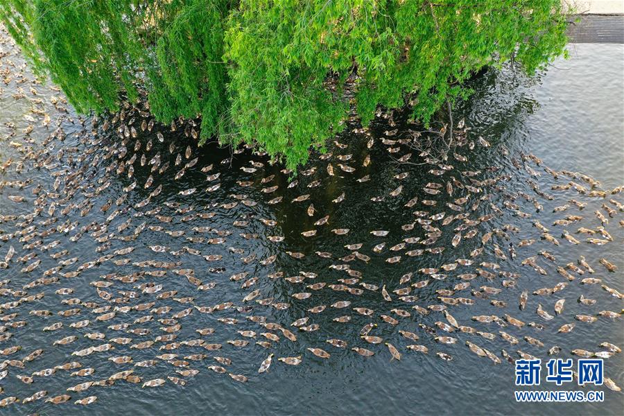 這是4月15日在高郵鴨良種繁育中心拍攝的鴨群(無人機照片)?!案哙]鴨蛋”是江蘇高郵的特色農業(yè)名片。近年來,當地在良種繁育、生態(tài)養(yǎng)殖、產品加工等方面加大力度,推動高郵鴨蛋品牌化建設,讓小鴨蛋成為帶動農戶致富的大產業(yè)。2019年,高郵市共計生產熟制鴨蛋產品近11.2億枚,年產值近17.68億元。新華社記者季春鵬攝