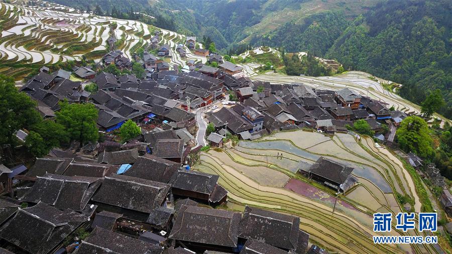 貴州省從江縣加榜鄉(xiāng)黨扭村苗寨景觀(guān)(4月17日攝)。貴州省從江縣把人居環(huán)境整治作為脫貧攻堅(jiān)工作的一項(xiàng)重要舉措來(lái)抓,對(duì)鄉(xiāng)村規(guī)劃范圍內(nèi)長(zhǎng)期無(wú)人居住的危房、廢棄禾倉(cāng)、棚圈、柴草房和房前屋后的殘?jiān)珨啾诘冗M(jìn)行清理整治,進(jìn)行復(fù)墾復(fù)綠,同時(shí)開(kāi)展農(nóng)戶(hù)衛(wèi)生和村寨環(huán)境整治,做到鄉(xiāng)村環(huán)境干凈、衛(wèi)生、整潔,扮靚美麗鄉(xiāng)村。新華社記者楊文斌攝