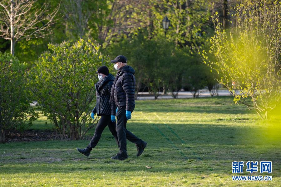 4月20日,人們在波蘭華沙的克拉辛斯基公園里散步。