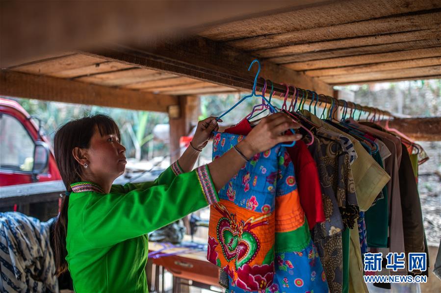 4月12日,在云南省勐海縣布朗山鄉(xiāng)曼囡村曼班三隊(duì),娜四在家晾曬衣服。新華社記者胡超攝
