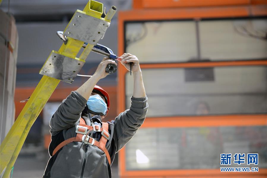 4月24日,一名工人在施工現(xiàn)場安裝機組轉(zhuǎn)子磁極引線和阻尼環(huán)。新華社記者韓曉雨攝