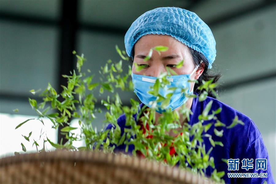 4月25日,工作人員在“扶貧茶園”內篩選茶青。谷雨過后,在貴州省黔東南苗族侗族自治州丹寨縣“扶貧茶園”,茶農(nóng)搶抓農(nóng)時趕制春茶。丹寨縣創(chuàng)新產(chǎn)業(yè)扶貧模式,鼓勵社會公眾線上認領茶園,再由茶園聘請當?shù)刎毨魟展?,為貧困戶?chuàng)造茶園管理、采茶、制茶等就業(yè)機會,幫助貧困戶增收。今年以來,“扶貧茶園”已接受線上預訂600余畝,給當?shù)?00余名村民提供了就業(yè)機會。新華社記者歐東衢攝