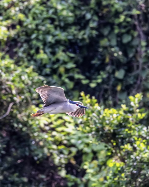 夜鷺,夜出性。喜結(jié)群,常成小群于晨、昏和夜間活動,白天結(jié)群隱藏于密林中僻靜處,或分散成小群棲息在僻靜的山坡、水庫或湖中小島上的灌叢或高大樹木的枝葉叢中,偶爾也見有單獨活動和棲息的。