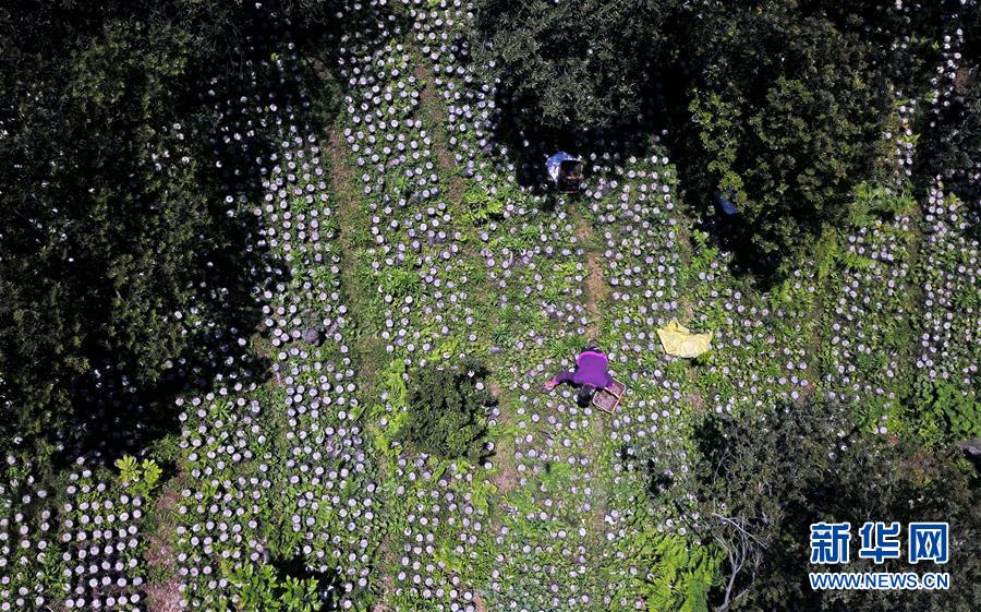 村民在劍河縣岑松鎮(zhèn)巫亮村林下仿野生食用菌基地采摘木耳(4月27日攝,無人機(jī)照片)。近年來,貴州省黔東南苗族侗族自治州劍河縣充分利用林下土地培育木耳,既不耽誤林木生長,又發(fā)展了食用菌產(chǎn)業(yè)。目前,該縣采取“龍頭企業(yè)+合作社+貧困戶”的合作模式,大力推廣林下木耳種植,帶動農(nóng)民增收。新華社記者楊文斌攝