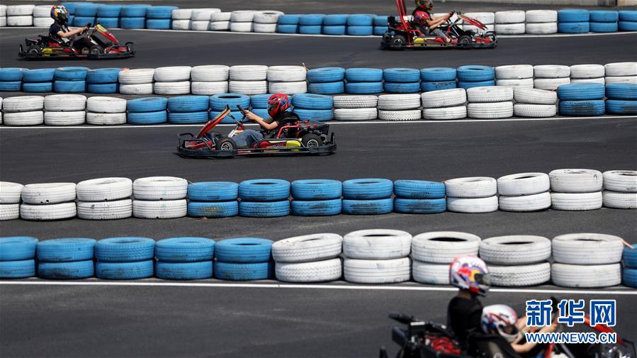 5月2日,游客在遼寧省鞍山市祥和度假莊園里開卡丁車?!拔逡弧奔偃掌陂g,人們以多種方式放松心情、享受假日。新華社記者姚劍鋒攝