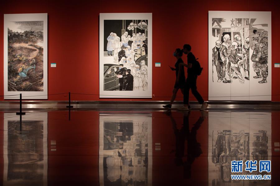 5月2日,觀眾在位于南京的江蘇省美術(shù)館觀看江蘇省抗疫主題美術(shù)書法精品展。“五一”假日期間,人們以多種方式放松心情、享受假日。新華社發(fā)(蘇陽攝)