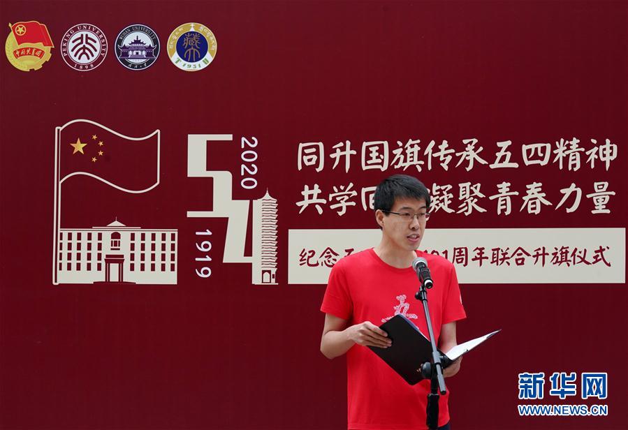 5月4日,北京大學(xué)青年代表在升旗儀式上發(fā)言。 當(dāng)日,北京大學(xué)通過與武漢大學(xué)、西藏大學(xué)、北京大學(xué)研究生支教團(tuán)聯(lián)合舉辦紀(jì)念五四運(yùn)動升旗儀式以及北京大學(xué)2020年五四青春詩會等活動,傳承五四精神,紀(jì)念五四青年節(jié)。 新華社記者 張晨霖 攝