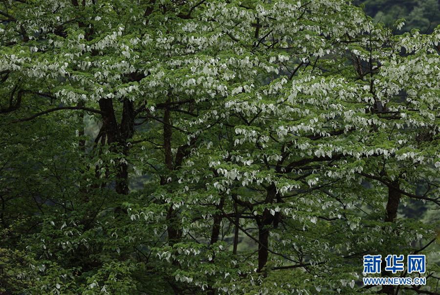 位于四川省滎經縣的龍蒼溝國家森林公園里,鴿子花盛開(5月4日攝)。目前,位于四川省大相嶺山脈東麓北坡的龍蒼溝國家森林公園里,約8萬畝鴿子花盛開,猶如鴿群展翅欲飛。鴿子花即珙桐花,珙桐是珍稀植物,有著植物“大熊貓”“活化石”之稱,是國家一級保護植物,也是著名的觀賞植物。2008年,華中農業(yè)大學、湖北民族學院和四川省縈經縣林業(yè)部門聯(lián)合對龍蒼溝森林公園的珙桐進行了種群生態(tài)學調查,發(fā)現(xiàn)珙桐在這里共分布約8萬畝,集中成片分布近4萬畝。珙桐面積之大、株數(shù)之多、密度之高,十分罕見。新華社記者 江宏景 攝