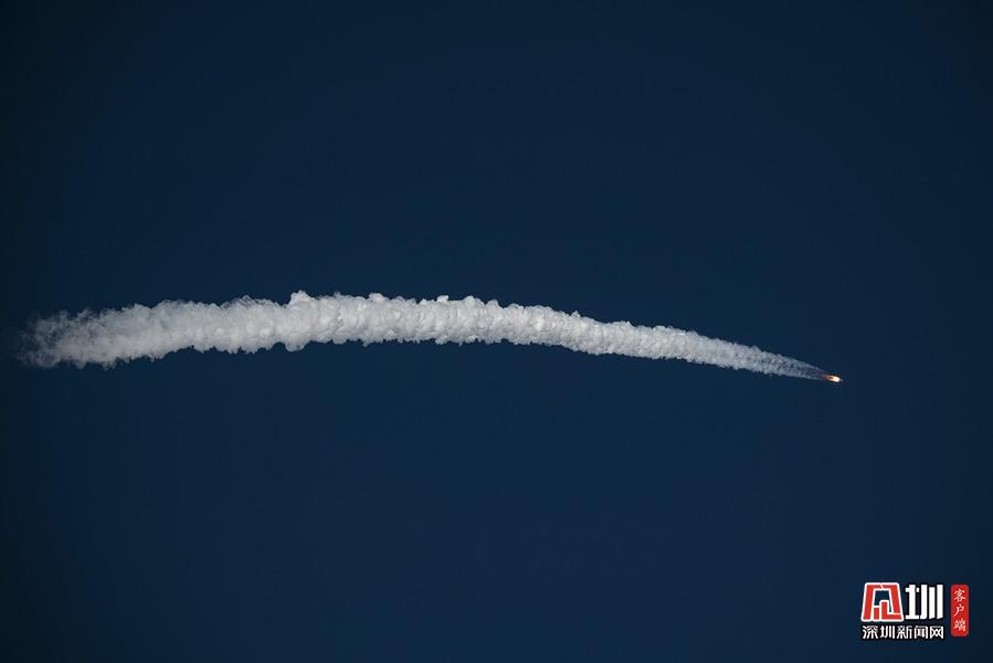 2020年5月5日18時(shí),長(zhǎng)征五號(hào)B運(yùn)載火箭在文昌發(fā)射場(chǎng)點(diǎn)火升空,這是火箭進(jìn)入大氣層后,天空留下的煙霧痕跡。