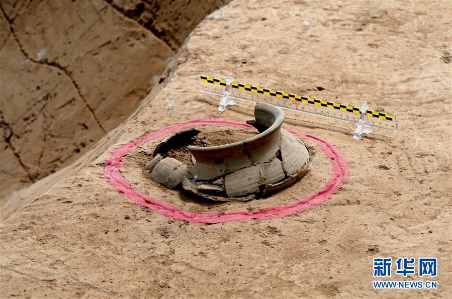 這是4月28日拍攝的雙槐樹遺址內用陶罐模擬的北斗九星天文遺跡。新華社記者李安攝