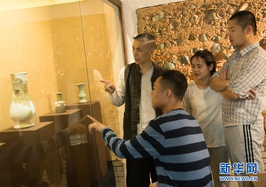 5月8日,項(xiàng)宏金在龍泉青瓷裝飾紋樣研究所和來(lái)訪(fǎng)的年輕瓷人分享古瓷。1965年出生的項(xiàng)宏金,被浙江龍泉年輕一代瓷人稱(chēng)為“項(xiàng)哥”,他從20世紀(jì)90年代開(kāi)始收集龍泉青瓷標(biāo)本,研究青瓷紋樣。2014年出版著作《龍泉青瓷裝飾紋樣》,次年開(kāi)設(shè)龍泉青瓷裝飾紋樣研究所,將自己收藏的千余件標(biāo)本跟瓷器愛(ài)好者、創(chuàng)作者免費(fèi)分享。新華社記者翁忻旸攝