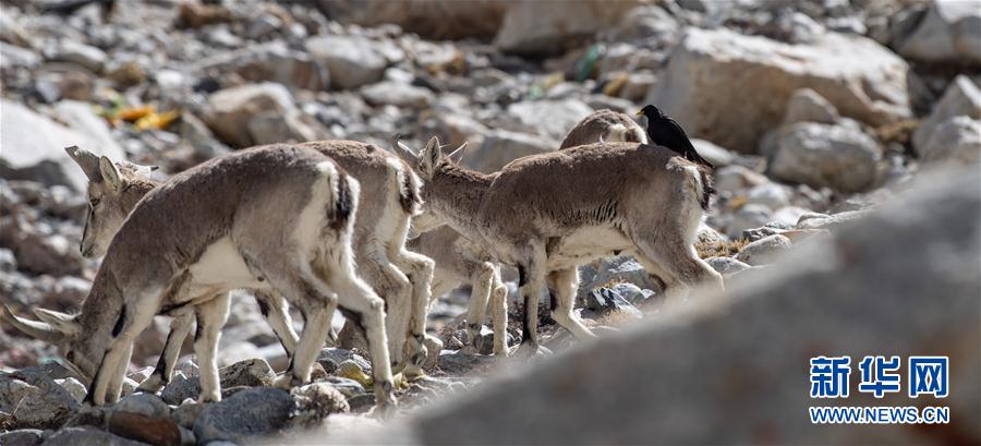 一群巖羊在珠峰大本營附近覓食(5月8日攝)。當(dāng)日,一群巖羊在珠峰大本營周圍覓食,黃嘴山鴉飛到巖羊身上停留,構(gòu)成一幅幅生動有趣的雪域圖畫。新華社記者晉美多吉攝