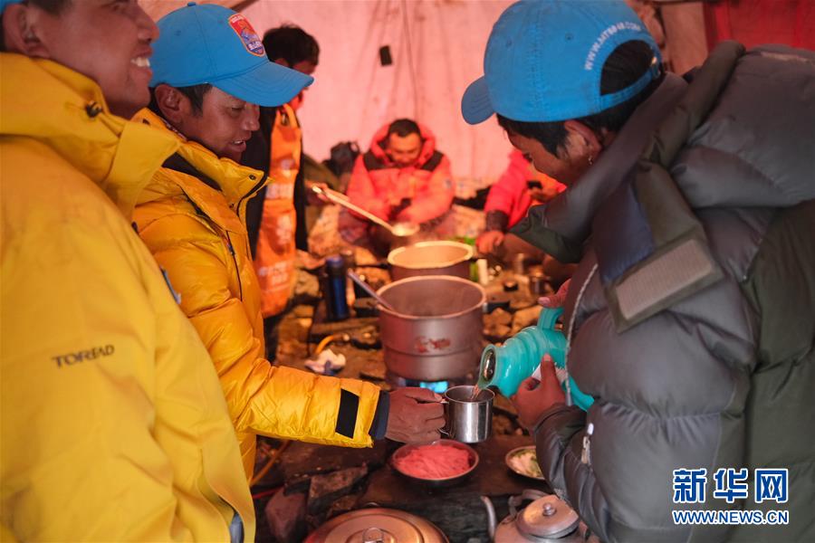 這是過渡營地的帳篷餐廳(5月8日攝)。珠峰過渡營地海拔5800米,是連接前進營地和珠峰大本營的重要一站。登山愛好者從大本營徒步大約四個小時就能抵達過渡營地。此段路程亂石林立,同時也能欣賞壯美的冰川。新華社記者孫非攝