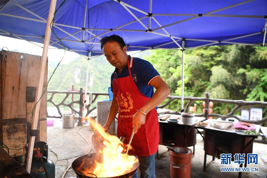 施六金在自家開的農家樂為客人準備午餐(4月25日攝)。1973年出生于十八洞村的施六金,由于父親患病很早就放棄學業(yè)和母親扛起了家庭的重擔。為了生活,他還曾遠去東南亞打工。2015年,看到家鄉(xiāng)的變化,施六金回到村里開起了農家樂,年度家庭人均純收入也從2014年的1715元增長到了2019年的35696元。2018年,施六金與心愛的人組建了家庭。今年初,施六金與愛人迎來了一個大胖小子。“做人做事要懂得回報和感恩?!笔┝鸾o剛出生的兒子取名施澤恩。新華社記者薛宇舸攝