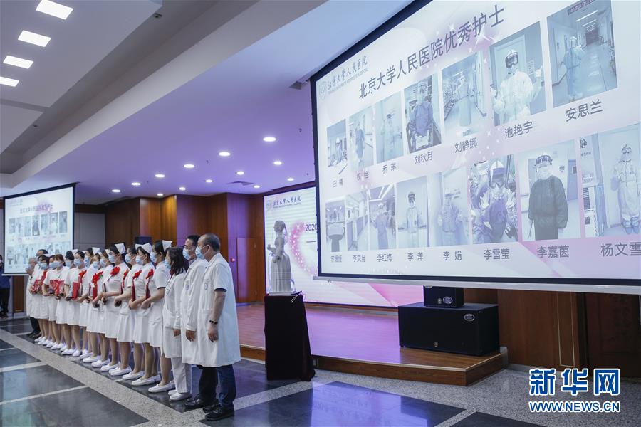 5月11日,獲獎護(hù)士在護(hù)士節(jié)活動上合影。在國際護(hù)士節(jié)到來之際,北京大學(xué)人民醫(yī)院11日舉辦慶祝護(hù)士節(jié)暨優(yōu)秀集體和個(gè)人表彰活動,并邀請?jiān)踽t(yī)療隊(duì)護(hù)士代表分享戰(zhàn)“疫”故事。我國今年護(hù)士節(jié)的主題為“致敬護(hù)士隊(duì)伍,攜手戰(zhàn)勝疫情”。新華社記者張玉薇攝