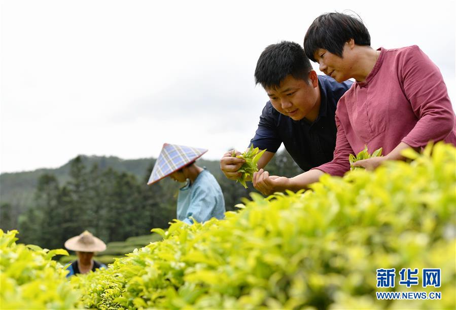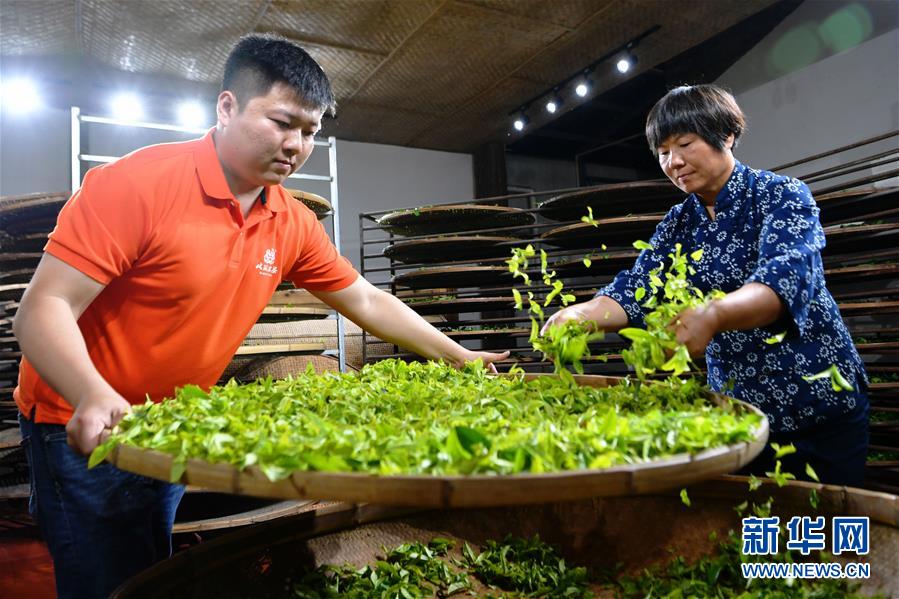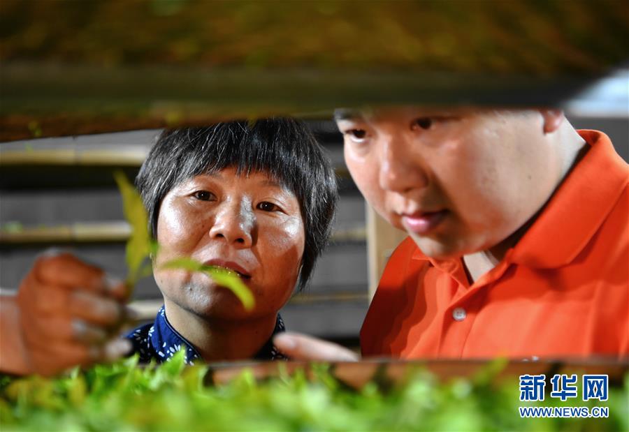 游玉瓊跟方舟一起對武夷巖茶中的白雞冠品種按白茶做法進行創(chuàng)新研發(fā)(5月10日攝)。新華社記者魏培全攝