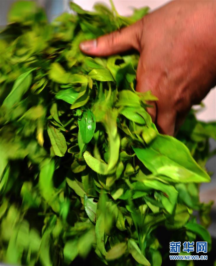 游玉瓊在對武夷巖茶中的白雞冠品種按白茶做法進行創(chuàng)新研制(5月10日攝)。新華社記者魏培全攝