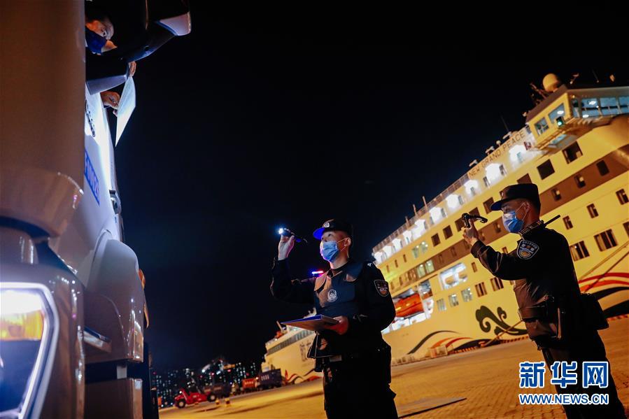 5月13日,山東威海出入境邊防檢查站民警在核對司乘人員信息。新華社記者朱崢攝