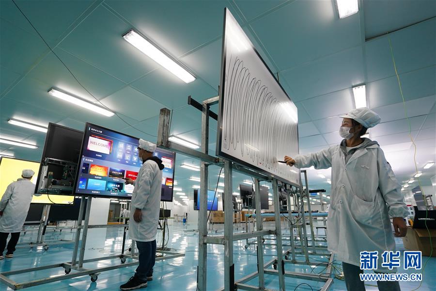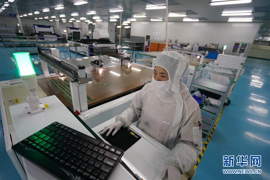 在位于宿遷激光產(chǎn)業(yè)園的江蘇華科創(chuàng)智技術(shù)有限公司,工人在觸摸屏生產(chǎn)車間作業(yè)(5月13日攝)。江蘇省宿遷市2016年初啟動建設(shè)宿遷激光產(chǎn)業(yè)園,目前,園區(qū)共有激光及相關(guān)配套企業(yè)50余家,涉及激光切割、激光打標(biāo)、激光醫(yī)療等。當(dāng)?shù)夭粩嗤晟茍@區(qū)配套設(shè)施,推動激光產(chǎn)業(yè)集聚,打造激光研發(fā)、裝備制造和加工應(yīng)用的完整產(chǎn)業(yè)鏈。新華社記者李博攝