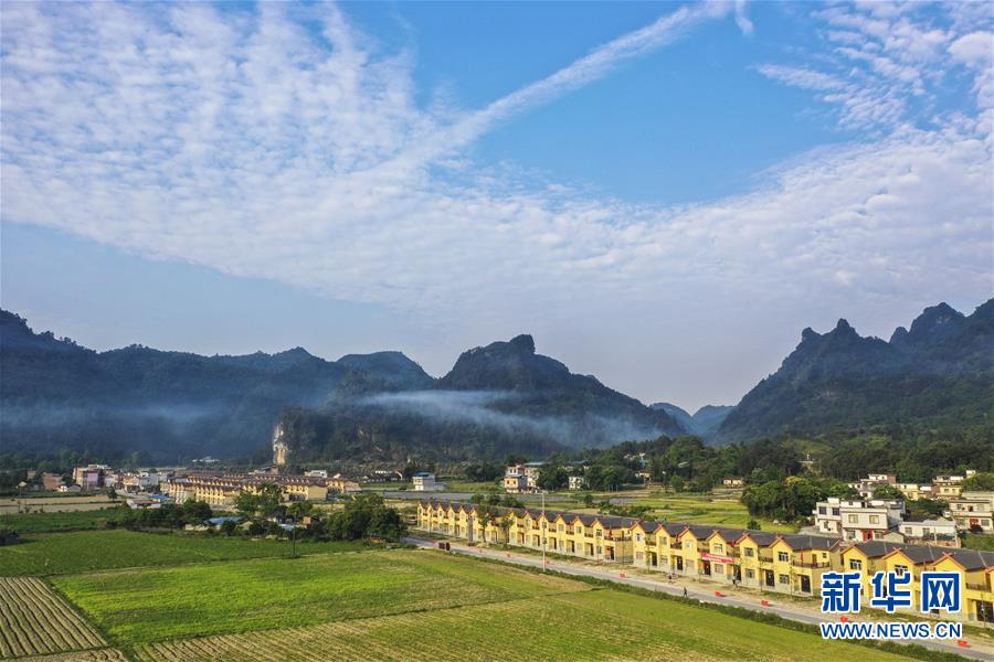 這是廣西南丹縣“千家瑤寨·萬戶瑤鄉(xiāng)”八圩瑤寨易地扶貧搬遷安置點(diǎn)(4月29日攝,無人機(jī)照片)。新華社記者曹祎銘攝