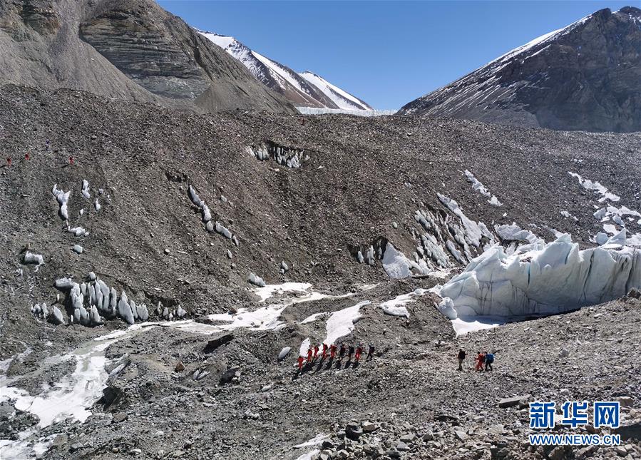 2020珠峰高程測(cè)量登山隊(duì)在前往海拔6500米的前進(jìn)營(yíng)地途中(5月17日攝)。5月17日11時(shí)左右,2020珠峰高程測(cè)量登山隊(duì)從海拔5800米的過渡營(yíng)地出發(fā),用時(shí)近5個(gè)小時(shí),到達(dá)海拔6500米的珠峰前進(jìn)營(yíng)地。據(jù)2020珠峰高程測(cè)量登山隊(duì)隊(duì)長(zhǎng)次落介紹,5月18日,隊(duì)伍將在前進(jìn)營(yíng)地進(jìn)行休整,并將對(duì)人員進(jìn)行分工,計(jì)劃成立沖頂組、支援組、接應(yīng)組,召開沖頂前的分工會(huì)議和動(dòng)員大會(huì)。新華社特約記者拉巴攝
