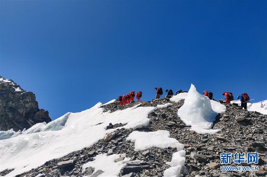 2020珠峰高程測(cè)量登山隊(duì)在前往海拔6500米的前進(jìn)營地途中(5月17日攝)。新華社特約記者拉巴攝