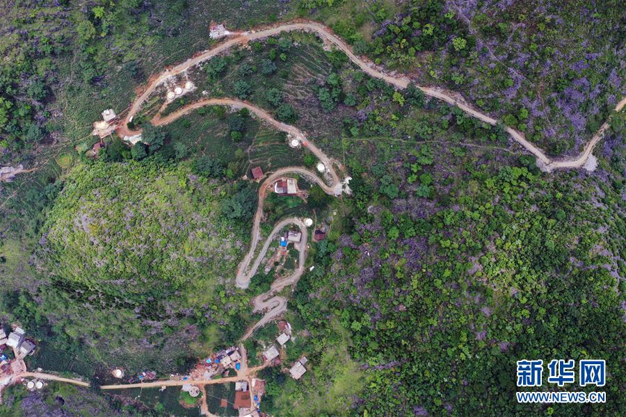 這是通向大化瑤族自治縣七百弄鄉(xiāng)弄平村的山路(5月15日攝,無人機照片)。新華社記者曹祎銘攝