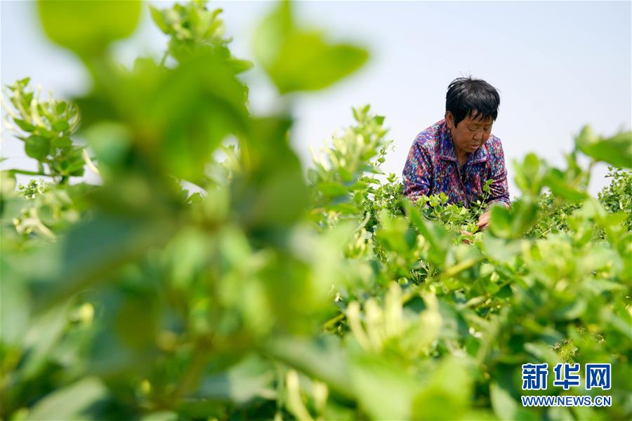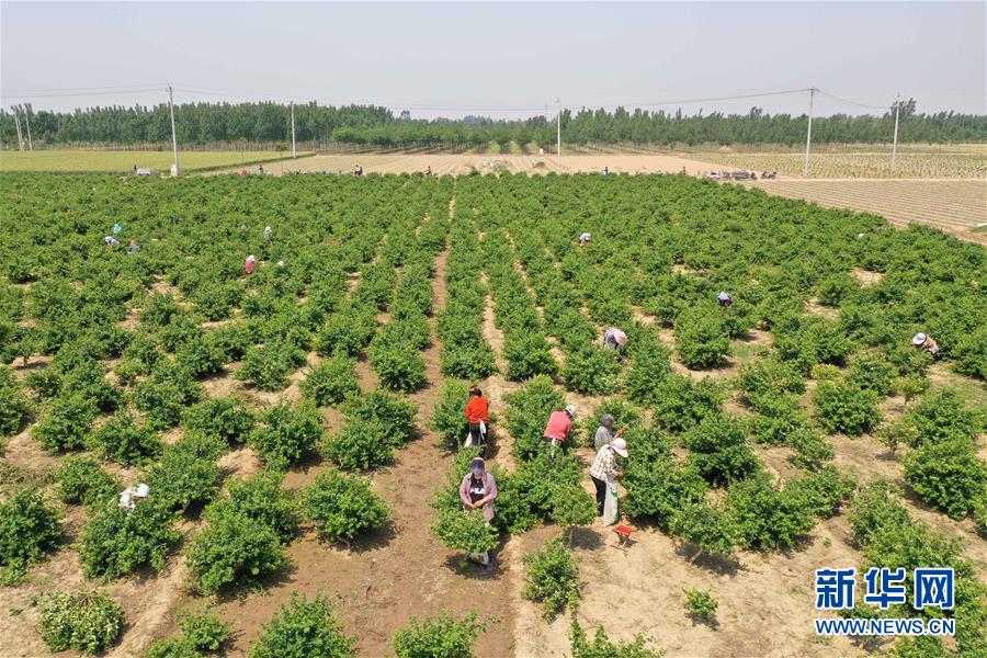 5月21日,河北省清河縣農(nóng)墾金銀花種植專業(yè)合作社社員在采收金銀花(無人機照片)。2017年以來,河北省清河縣在推進農(nóng)業(yè)產(chǎn)業(yè)結(jié)構(gòu)調(diào)整過程中,結(jié)合市場需求,立足當?shù)赝寥馈夂蛱攸c,依托公司“訂單”引導(dǎo)農(nóng)民發(fā)展金銀花種植。目前,清河縣金銀花種植面積近2000畝,帶動40多個村莊的2000余名農(nóng)民人均增收千元以上。新華社記者牟宇攝