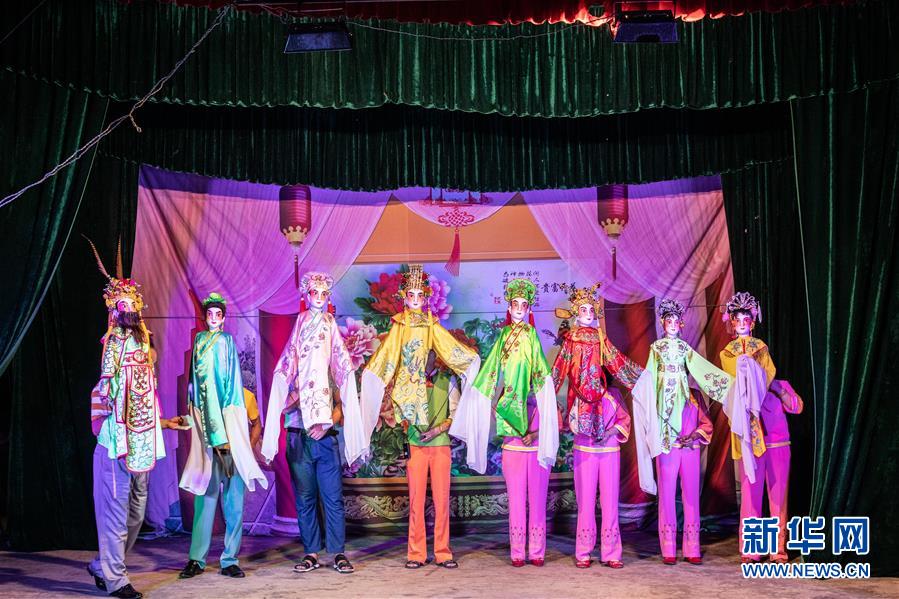 5月24日,海南臨高新風(fēng)人偶戲團(tuán)的人偶在舞臺(tái)亮相。新華社記者張麗蕓攝