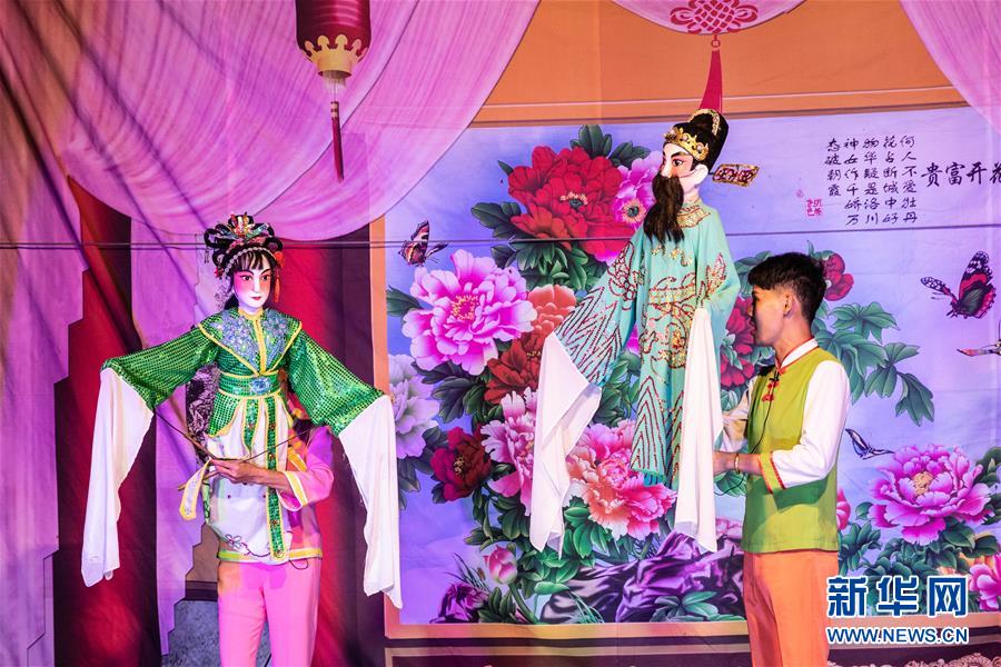 5月24日,海南臨高新風(fēng)人偶戲團(tuán)在臨高縣美朗村演出。新華社記者張麗蕓攝