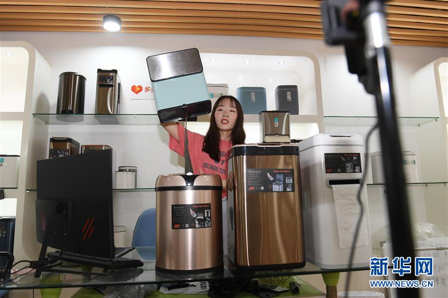 5月25日,在浙江省臺(tái)州市黃巖區(qū),一家塑料制品生產(chǎn)企業(yè)的工作人員在直播銷售智能垃圾桶。近年來(lái),浙江省臺(tái)州市黃巖區(qū)的家居塑料制品生產(chǎn)企業(yè)加強(qiáng)與國(guó)內(nèi)電商平臺(tái)的對(duì)接,大力開(kāi)拓線上市場(chǎng),根據(jù)線上市場(chǎng)反饋,提升產(chǎn)品研發(fā)針對(duì)性,創(chuàng)新產(chǎn)品類型,為企業(yè)轉(zhuǎn)型升級(jí)注入活力。新華社記者翁忻旸攝