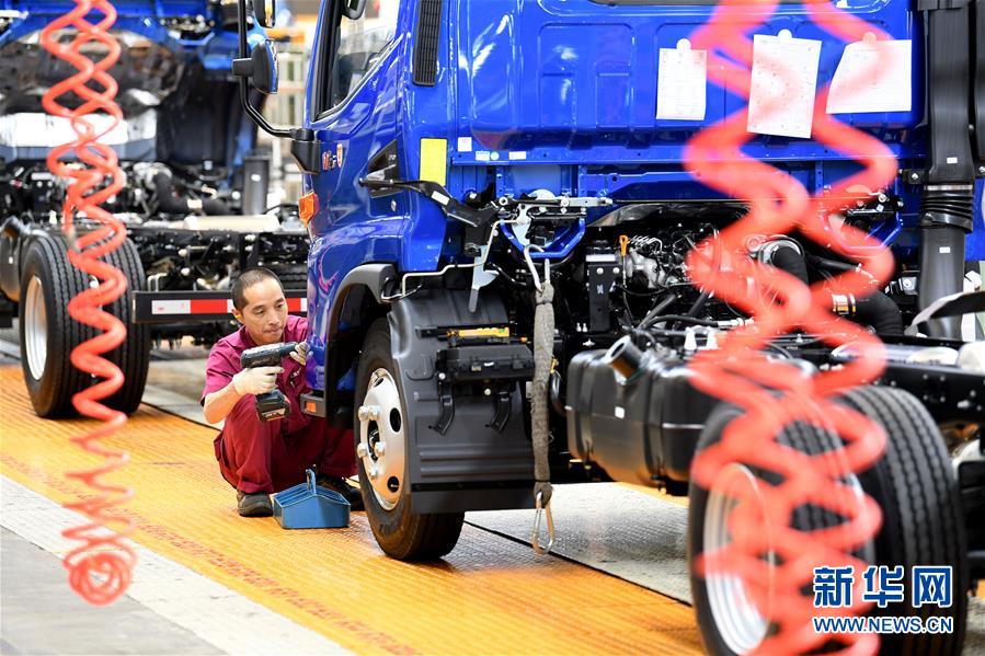 5月26日,工人在江淮汽車新港基地輕卡生產(chǎn)區(qū)內(nèi)忙碌。新華社記者劉軍喜攝