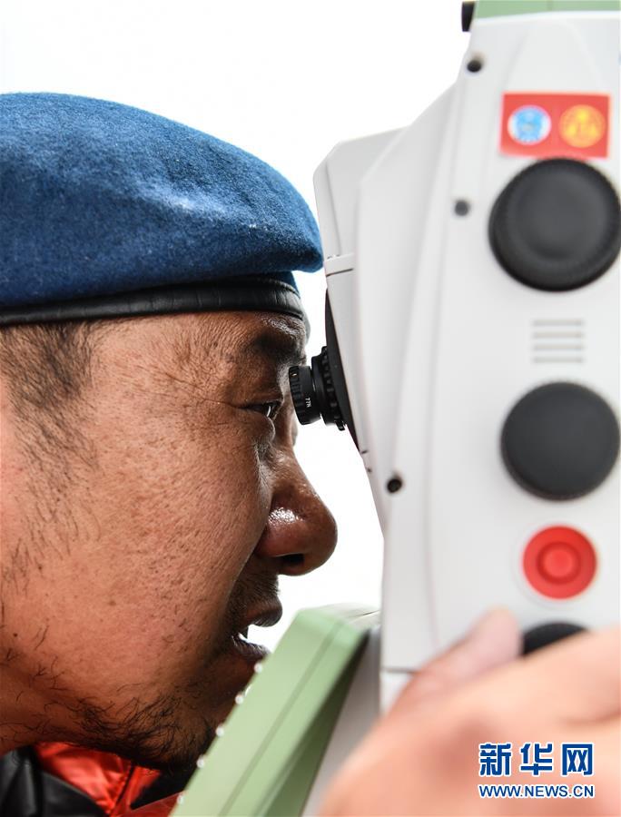 當(dāng)日,2020珠峰高程測(cè)量登山隊(duì)成功登頂后,在珠峰大本營(yíng)的珠峰高程起算點(diǎn),自然資源部第一大地測(cè)量隊(duì)隊(duì)員利用全站儀等儀器對(duì)珠穆朗瑪峰峰頂進(jìn)行交會(huì)觀測(cè)。