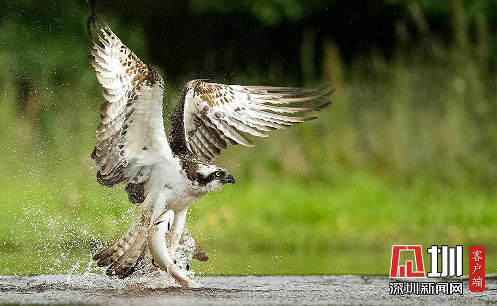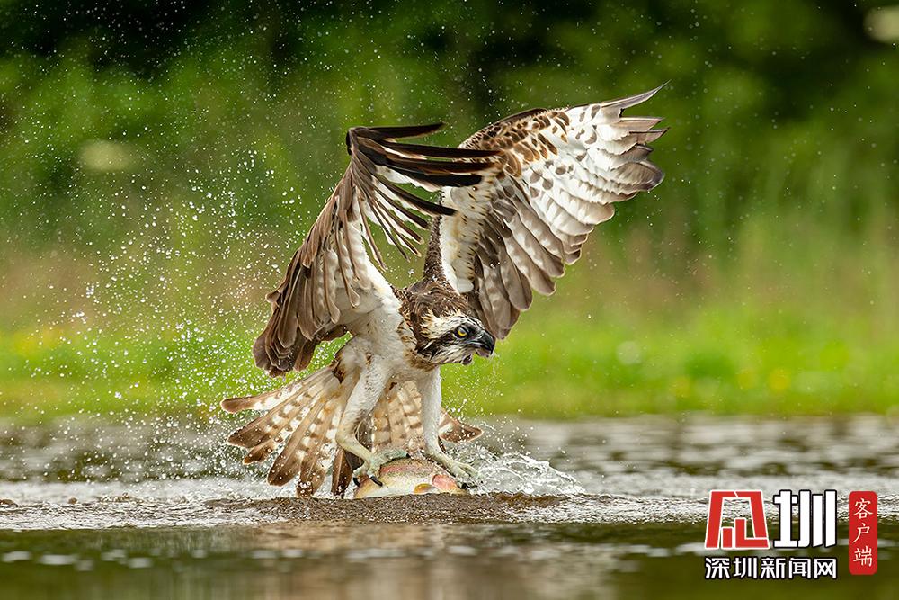 2020年5月28日?qǐng)?bào)道(具體拍攝時(shí)間不詳),54歲的Gladys Klip來(lái)自荷蘭,是一名銀行助理,他在蘇格蘭高地拍攝到魚(yú)鷹捕魚(yú)的精彩照片。畫(huà)面中,魚(yú)鷹快速俯沖而下,掠過(guò)水面,鷹爪隨即從水中成功抓起一條魚(yú)兒,濺起水花,整個(gè)過(guò)程精彩詮釋快準(zhǔn)狠。Gladys Klip稱他在早晨5點(diǎn)的時(shí)候已經(jīng)在等候拍攝。