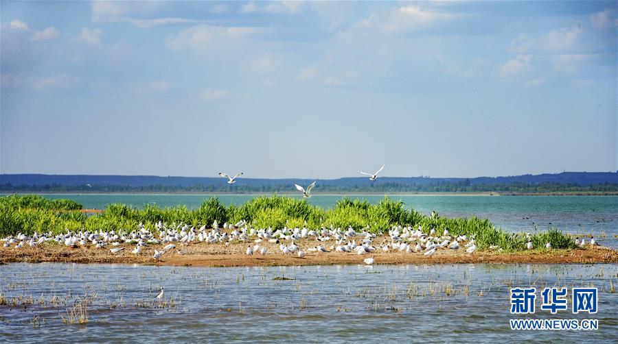 5月27日在陜西省神木市紅堿淖拍攝的遺鷗。陜西省神木市紅堿淖是中國(guó)最大的沙漠淡水湖,近年來(lái)隨著周邊生態(tài)環(huán)境改善,紅堿淖水位逐年提升,水域面積不斷擴(kuò)大,每年四至八月,都會(huì)吸引大批遺鷗來(lái)此繁衍棲息,已成為遺鷗繁殖的重要基地。新華社記者陶明攝