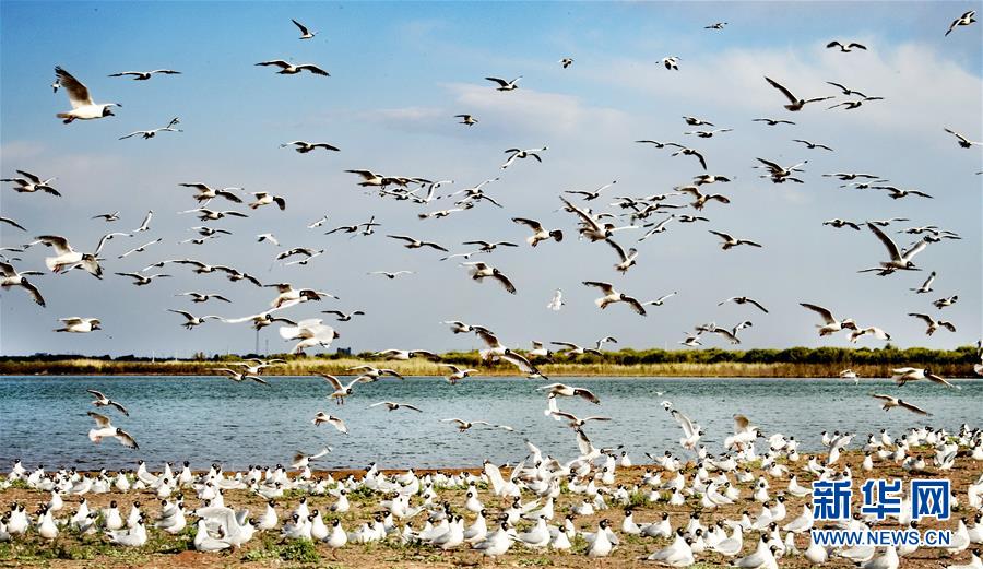 5月27日在陜西省神木市紅堿淖拍攝的遺鷗。陜西省神木市紅堿淖是中國最大的沙漠淡水湖,近年來隨著周邊生態(tài)環(huán)境改善,紅堿淖水位逐年提升,水域面積不斷擴(kuò)大,每年四至八月,都會(huì)吸引大批遺鷗來此繁衍棲息,已成為遺鷗繁殖的重要基地。新華社記者陶明攝