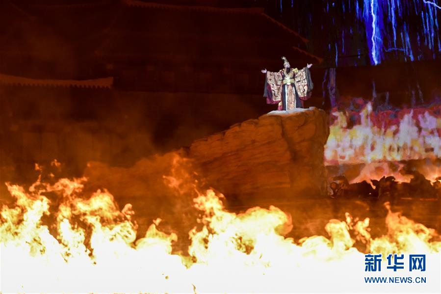 5月28日,演員在大型實景神話音樂劇《昆侖之約》中表演。5月28日,新疆文化旅游新名片——大型實景神話音樂劇《昆侖之約》在烏魯木齊南山景區(qū)上演。該劇融自然山水之美、藝術(shù)文化之光、現(xiàn)代科技之新于一體,為市民獻上一場視聽盛宴。新華社記者丁磊攝
