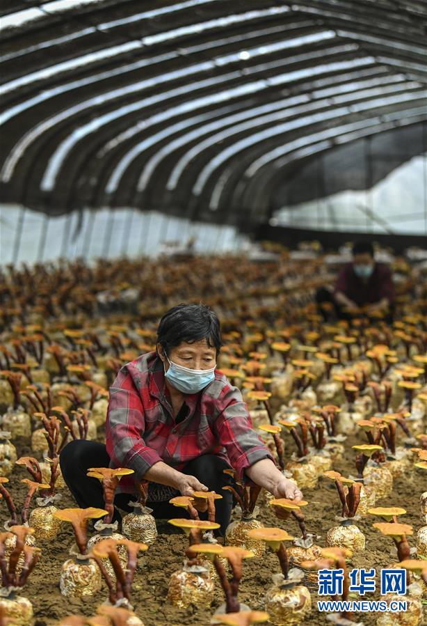 5月30日,在山東省棗莊市嶧城區(qū)峨山鎮(zhèn)食用菌培植扶貧基地,工人在進行靈芝種植管理。為了幫助貧困戶穩(wěn)定脫貧,山東省棗莊市嶧城區(qū)峨山鎮(zhèn)采取“公司+基地+農戶”的經(jīng)營模式,建立食用菌培植扶貧基地,發(fā)展食用菌種植產業(yè),惠及160余名貧困戶。目前,基地已集菌種試驗、培育、生產、銷售于一體,年銷售菌棒500多萬袋,生產各類鮮菇1200余噸。新華社記者 范長國 攝