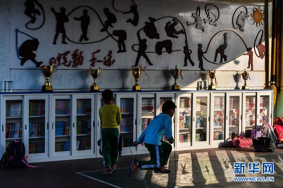 跳繩運動已經(jīng)深深融入七星小學(xué)的日常,放學(xué)后,孩子們都愿意在學(xué)校跳跳繩(2019年11月18日攝)。新華社記者劉大偉攝