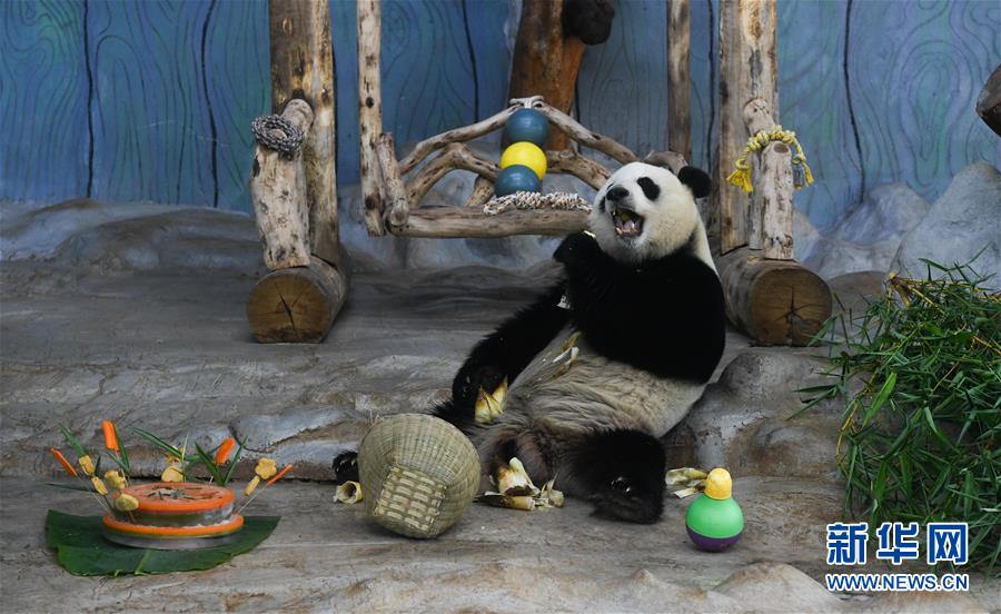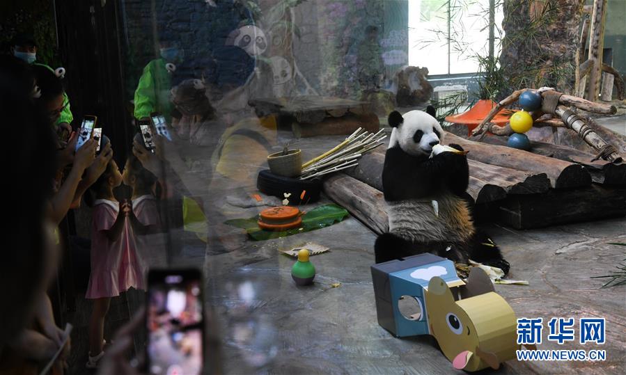 當日是“六一”國際兒童節(jié),海南熱帶野生動植物園為園區(qū)內的大熊貓“貢貢”“舜舜”準備了美食和玩具,與小朋友們一同歡度節(jié)日。