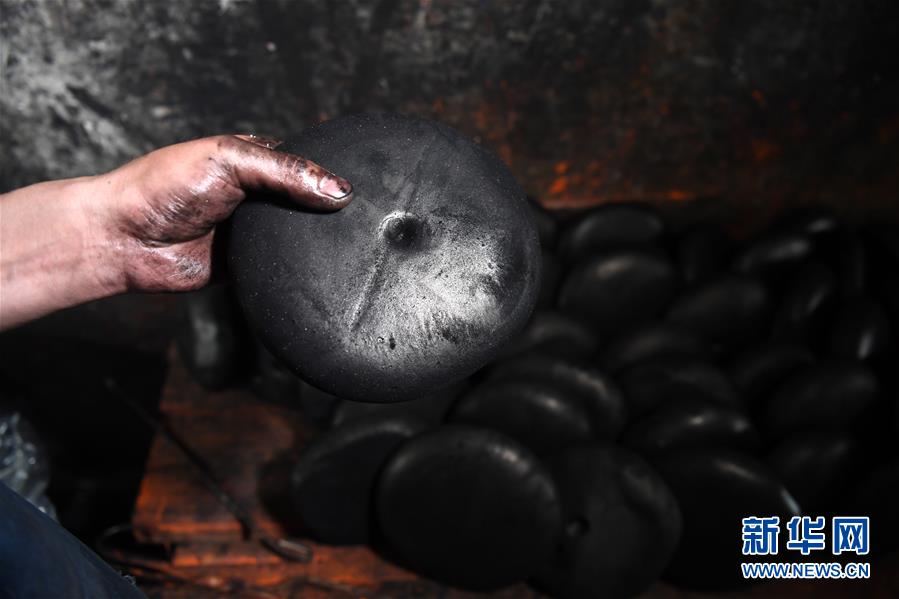 5月21日,安徽歙縣“項(xiàng)氏徽墨”的工人在查看墨餅。墨餅經(jīng)過(guò)加熱融化,再進(jìn)行捶打,制作成墨胚。新華社記者張端攝。